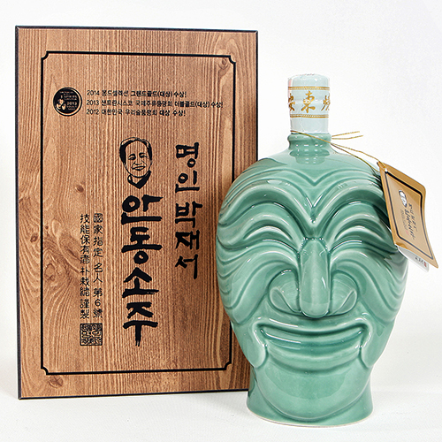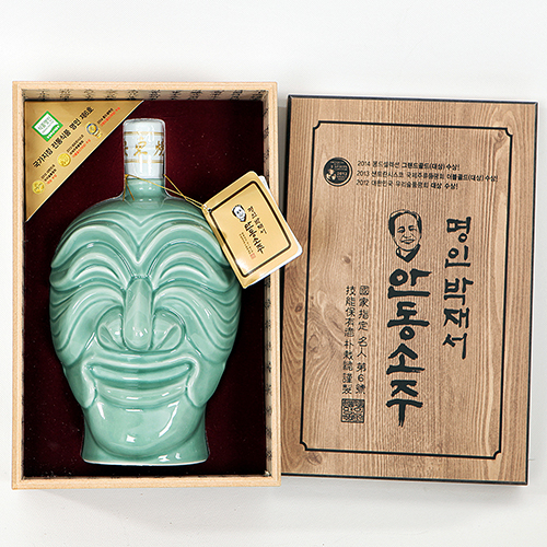 - Sản phẩm được đựng trong chai sứ hình mặt nạ Yangban (mặt nạ quý tộc trong bộ 12 mặt nạ Hahoe truyền thống nổi tiếng của thành phố Andong) và được đặt tronghộp gỗ tăng thêm tính trang trọng và nét truyền thống cho sản phẩm rất phù hợp mang tặng.